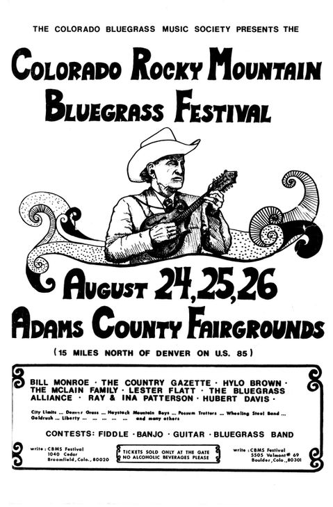 At the time, multi-day bluegrass festivals were still young, the first one originating in Fincastle, VA in ‘65. But by ’73 there were nearly 70 such festivals around the country, and the Father of Bluegrass, Bill Monroe, wanted his own-and he wanted it in Colorado.