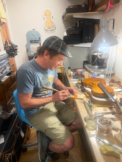 In 2018, Laura was indeed offered that full-time job at CU. Will had already made many connections with bluegrassers who play fiddle and other bowed instruments. It was time to move to Colorado. They found a home in a beautiful family-friendly neighborhood in Louisville, which was idyllic for them and their two young children. (Many of us have seen their kids playing their hearts out on their own sized-down violins, busking in the best spots at Planet Bluegrass.) Will set up shop in their home.